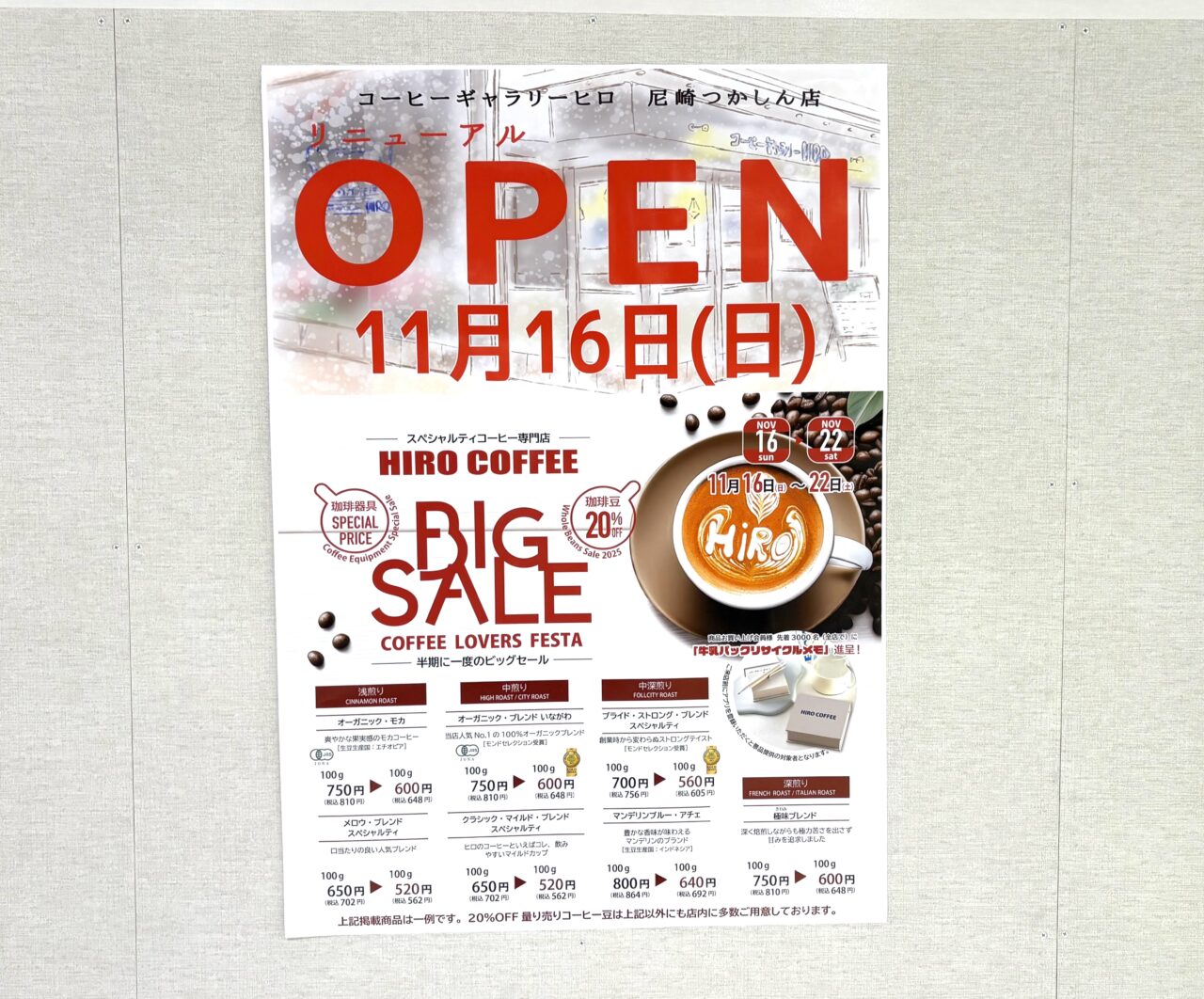コーヒーギャラリーヒロ 尼崎つかしん店はこちら(2025年11月16日リニューアルオープン)