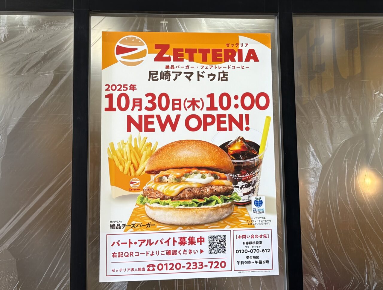 ロッテリア発の新業態「ZETTERIA(ゼッテリア)」がついに尼崎にデビュー!アマドゥのロッテリア跡地にオープンします♪