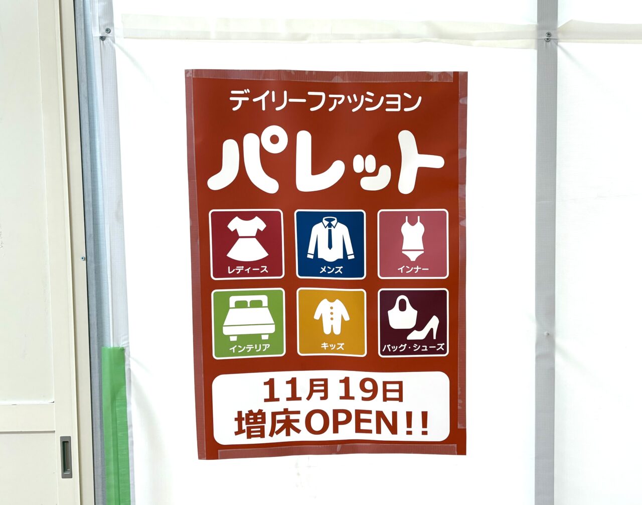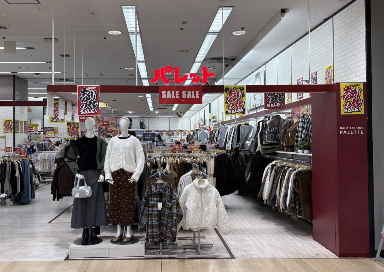 現在1階にある「パレット」は増床前の売りつくしセールの真っ最中です。セールは11月11日まで、秋物衣料のほかバッグや寝具もお買い得価格になっているのでこれは要チェックですよ〜。
