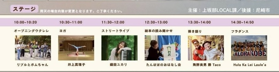 さらにステージイベントとして、ワークショップやステージ発表なども実施されます。上坂部の魅力をぎゅっと凝縮した1日になりそうですよ♪
