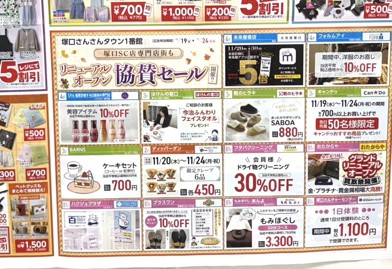さらに!パレット増床オープンに伴い、塚口さんさんタウン1番館の他の専門店も「協賛セール」を実施中です。期間は2025年11月24日まで。ぜひこちら↓をチェックしてみてくださいね。