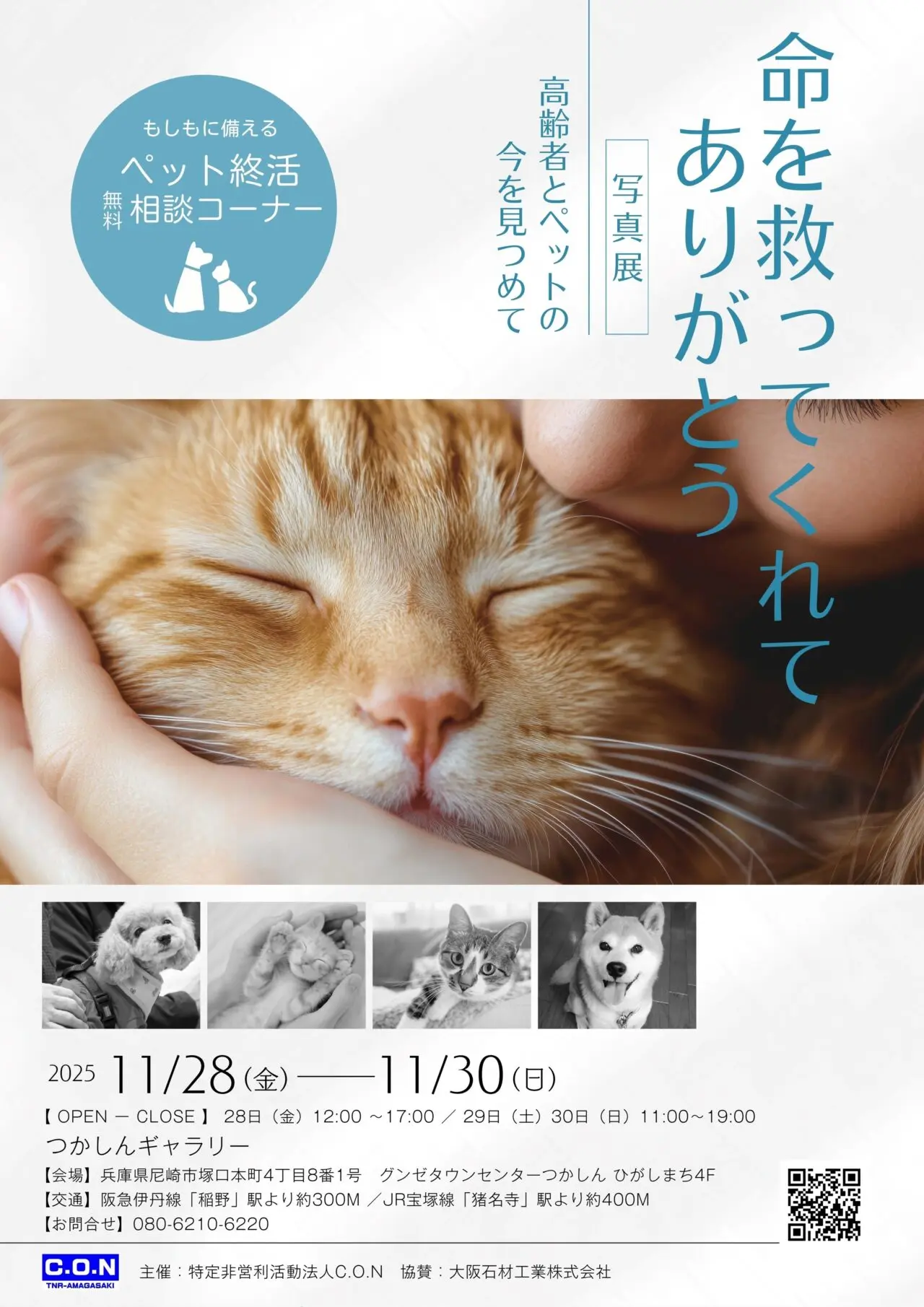 【尼崎市】飼育放棄から保護された犬猫と新しい家族の出会い。つかしんで写真展「命を救ってくれて、ありがとう」が開催されます。