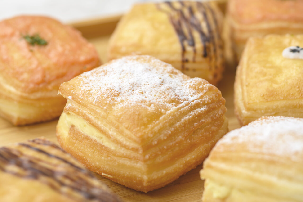 気になるラインナップは、「カスタードクリーム」「チョコレート」「さつまいも」の甘系のほか、明太子とマヨネーズを合わせたクリームをトッピングした、甘くないドーナツの「明太子」が加わった4種類。