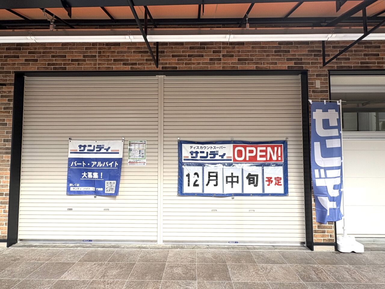 高架下の店舗なので、横長の作りになっています。見たところ、意外と広さがある感じでしたよ。サンディ公式サイトによると「サンディ阪神武庫川店」として2025年12月11日オープンのようです。