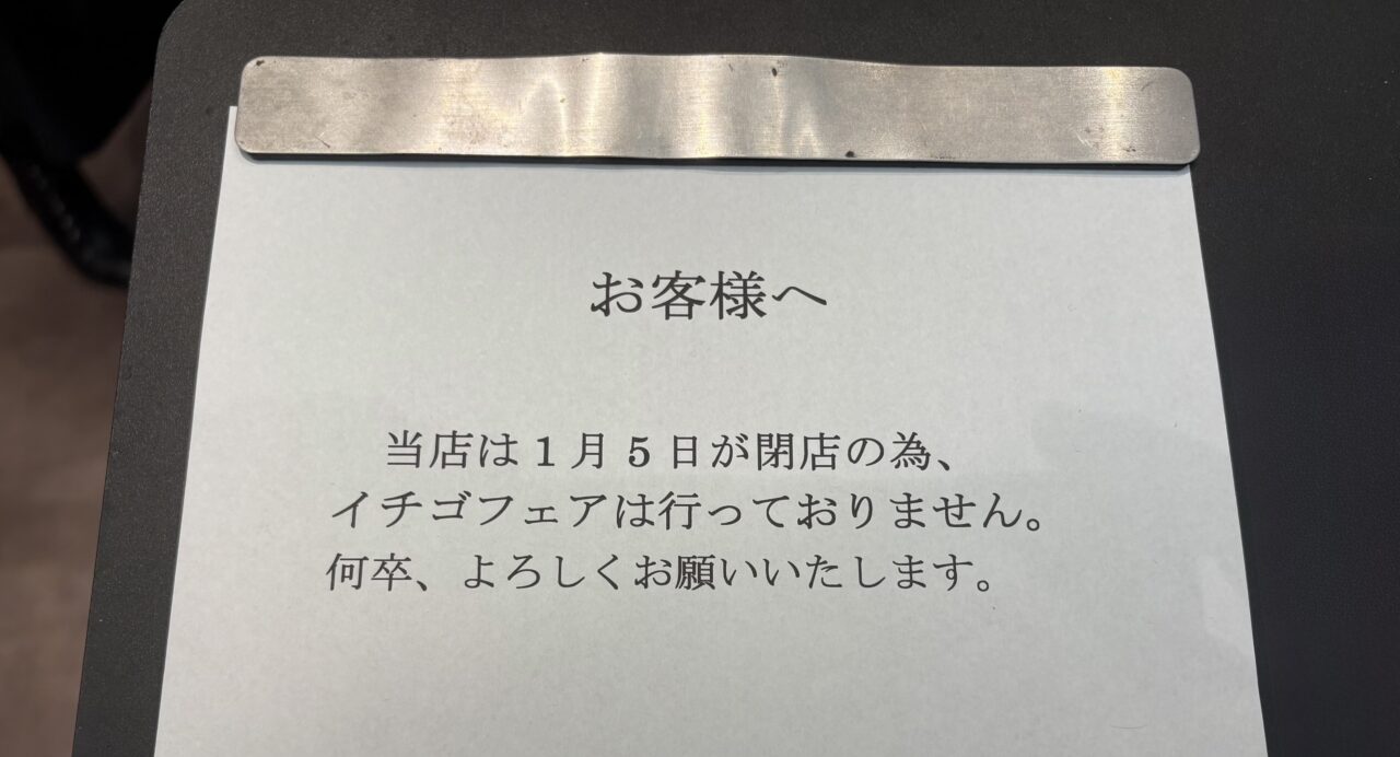 閉店日が1月5日ということで、例年好評だった「いちごフェア」は開催していないようです。