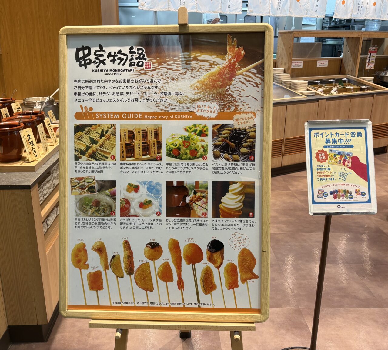 自分のオリジナルの串揚げを作るのはもちろん、サラダやお惣菜、デザート、フルーツ、お茶漬けなどメニュー全てビュッフェスタイルで楽しめます。コスパよく気軽に利用できるので、 いつも若い層のお客様で賑わっていました。閉店はちょっと残念ですね。