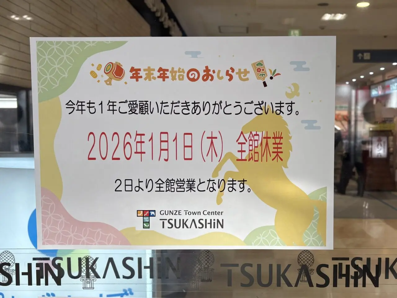 グンゼタウンセンターつかしん 元日全館休館 2日より営業