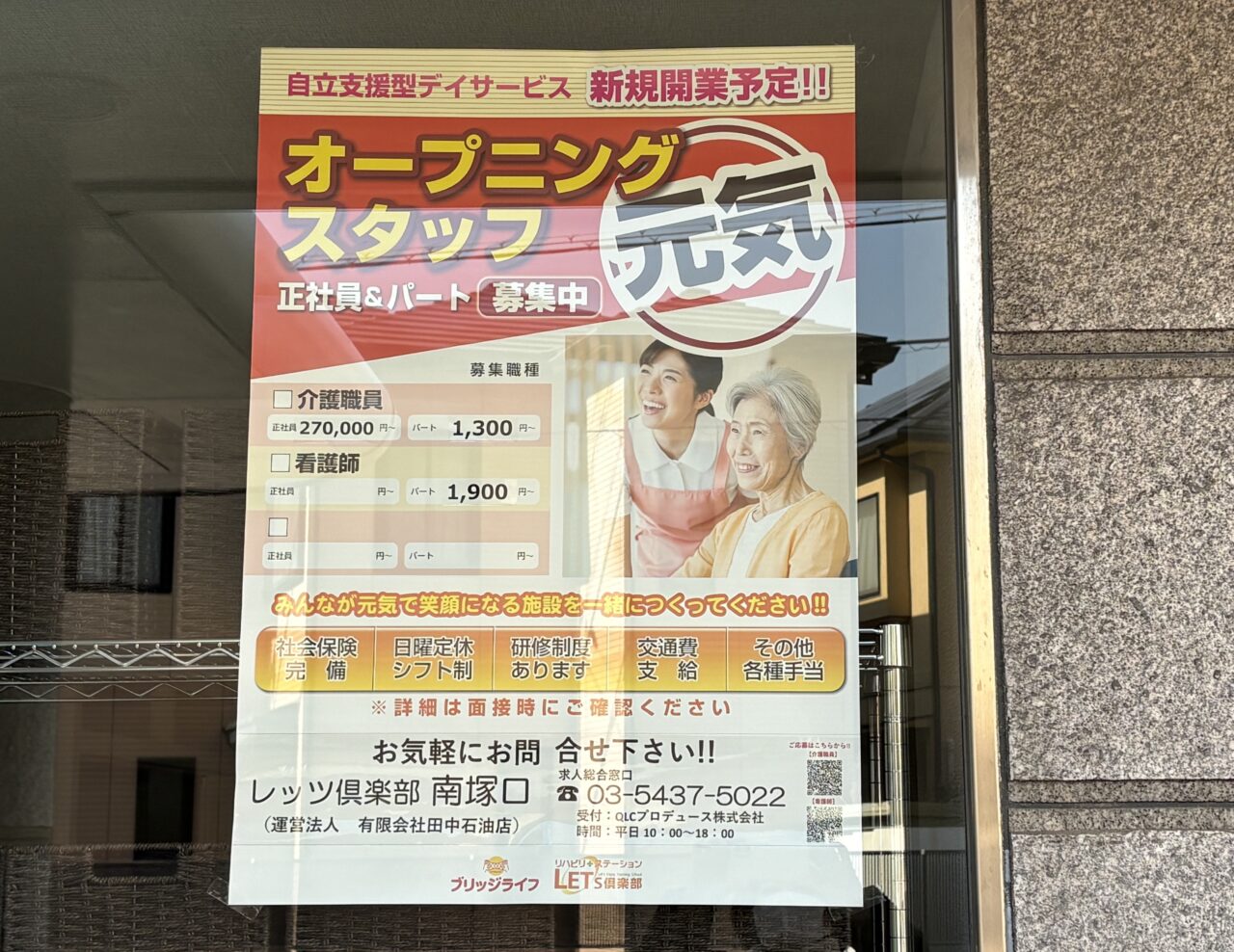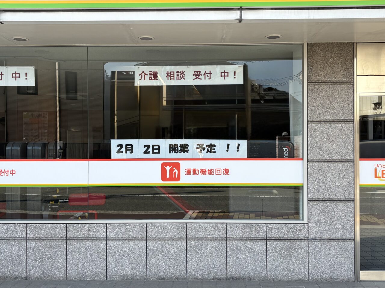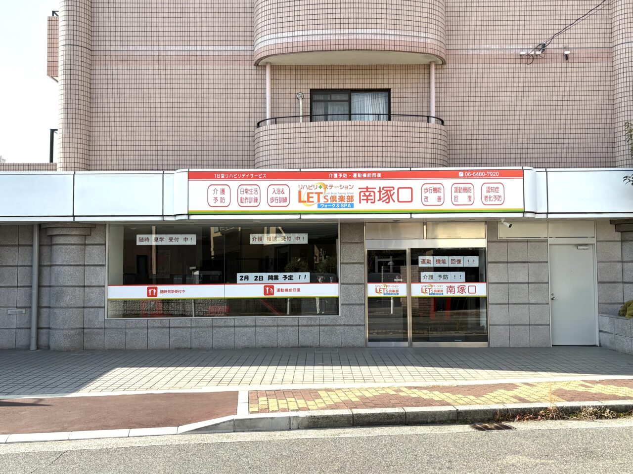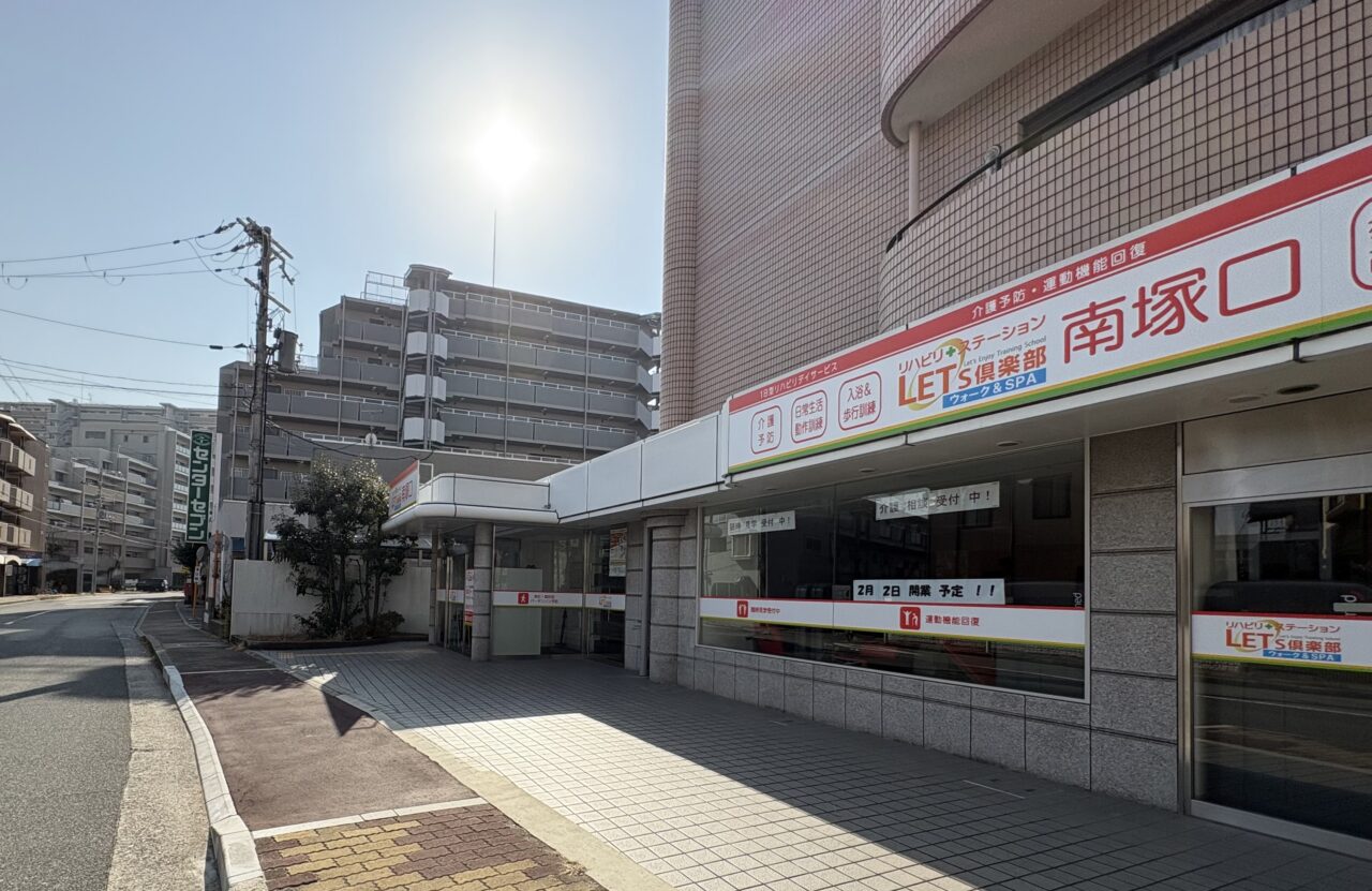 「レッツ倶楽部 南塚口」という店舗です。どういう業種かな?と調べてみたところ、どうやら自立支援型デイサービスの新規店舗のようです。
