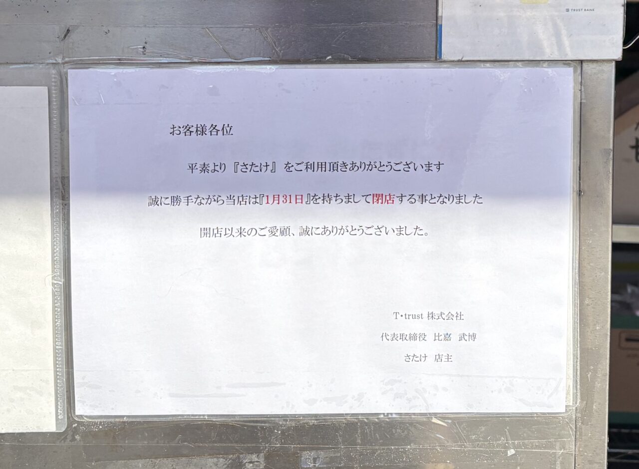 閉店日は2026年1月31日とのこと。