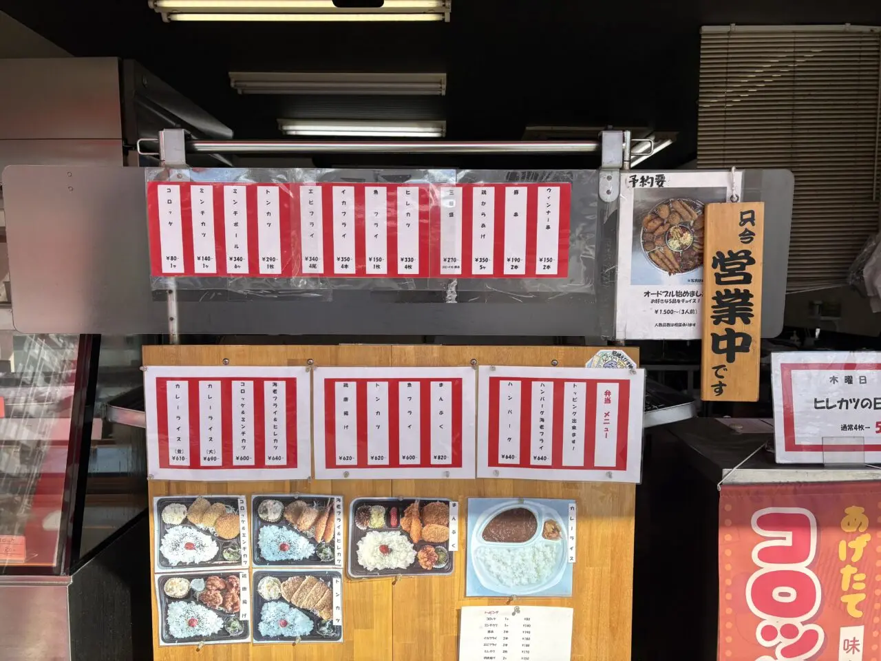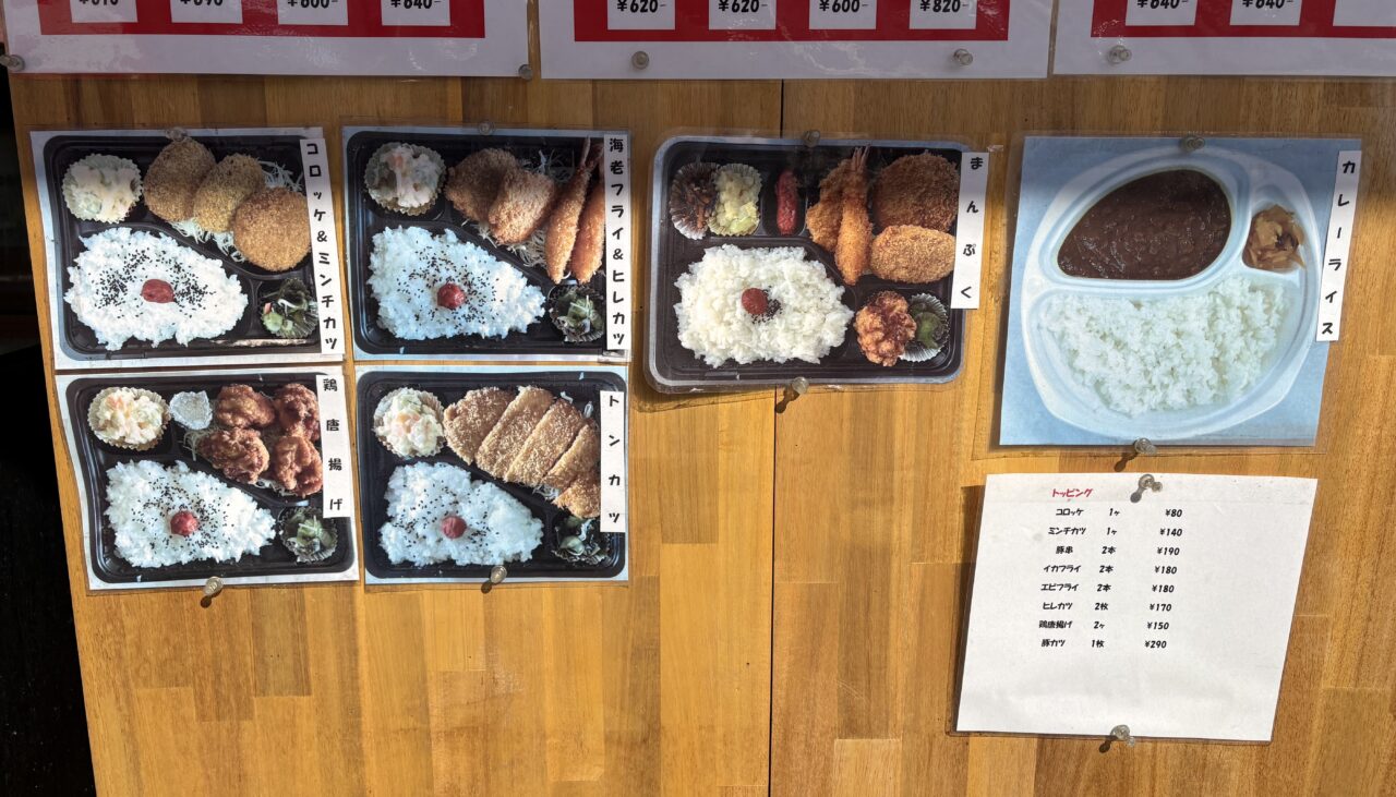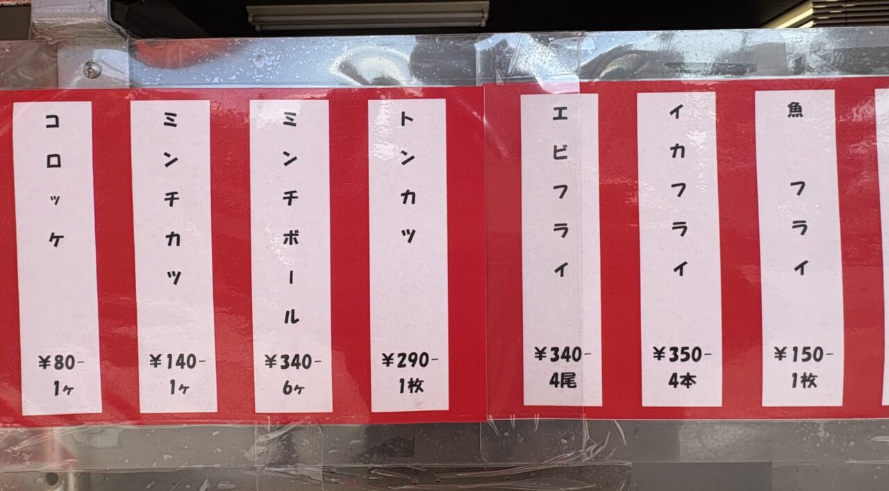 コロッケ1個80円、ミンチカツ140円、とんかつは290円とお値段もうれしい尼崎価格。コロッケの味付けがけっこうしっかり目で、これがごはんによく合うのですよね。揚げたてのフライが入ったお弁当も人気でした。とにかく、どれを食べてもはずれがありません。