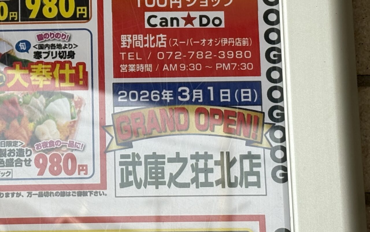 スーパーオオジの7店舗目が武庫之荘7丁目にまもなくオープン!楽しみに待ちたいと思います。オープンセールにも期待したいですね♪