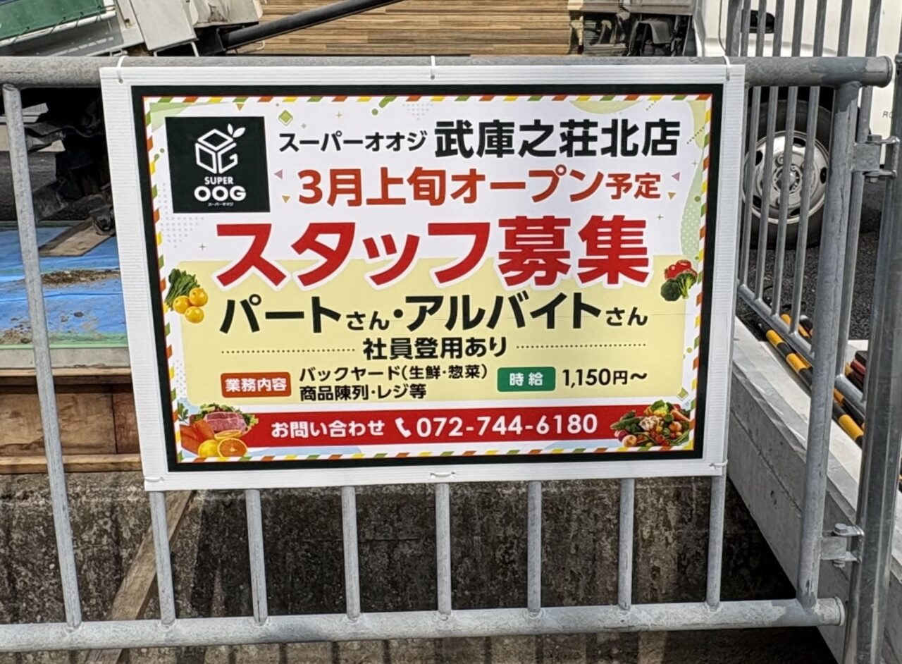 【尼崎市】オープンは3月!「スーパーオオジ 武庫之荘北店」の看板が上がっていました♪