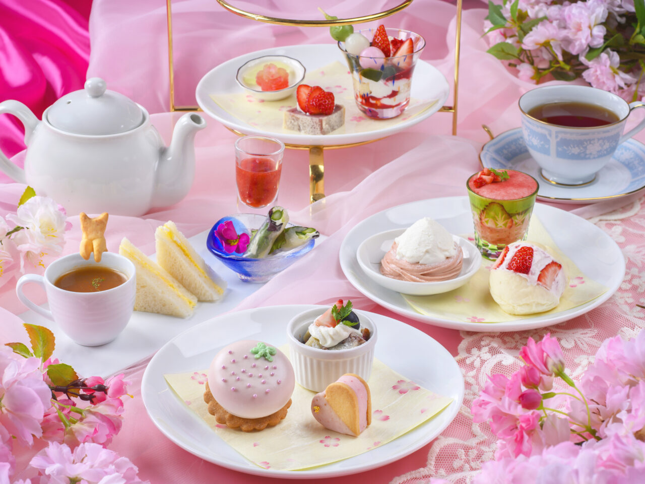 ティラミスなどイタリアンドルチェをいちご仕立てにした洋スイーツに加え、抹茶やほうじ茶を取り入れた「いちごのお花見パフェ」など和スイーツもラインナップ。 パティシエが一品一品ていねいに仕上げた和洋のいちごスイーツが、3段スタンドに美しく盛り付けられています。