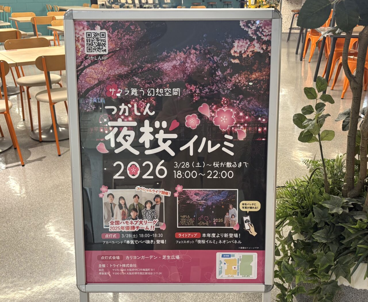 【尼崎市】つかしんの「夜桜イルミ」が3月28日からはじまります。点灯式にはアカペラバンドも登場♪