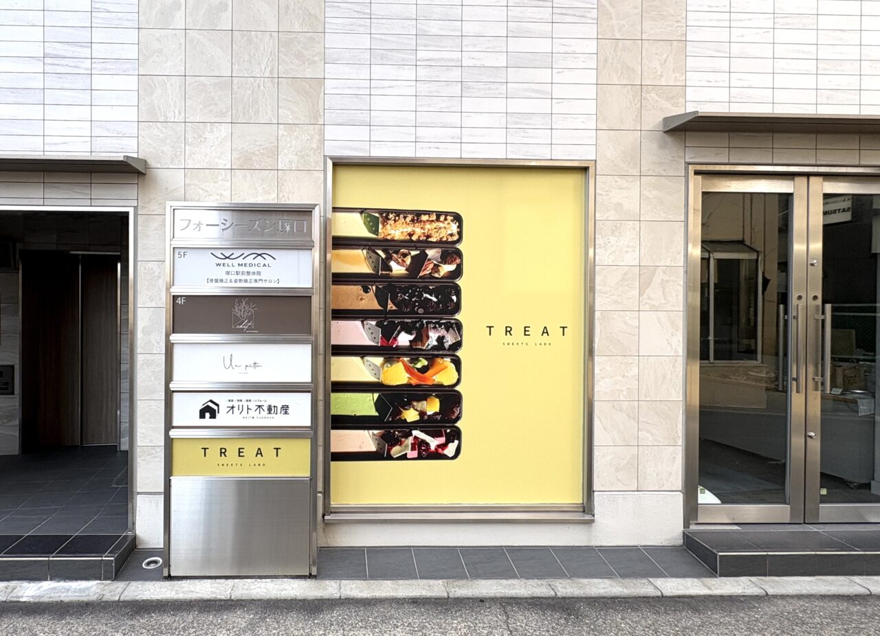 お店の場所は、阪急塚口駅の南改札から徒歩2分。2024年にオープンしたケーキ店「add knot塚口」のあったフォーシーズン塚口の1階です。同じ系列の「チーズケーキ専門店TREAT(トリート)」として新たにオープンされるようです。
