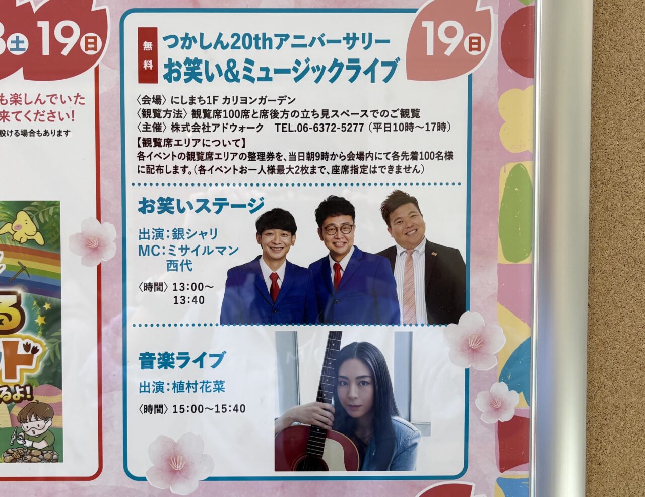観覧席の整理券配布は当日の朝9時からとなっています。その他の注意事項などはつかしん20thアニバーサリー お笑い&ミュージックライブをご覧くださいね。つかしんの20周年をみんなで一緒に盛り上げましょう♪